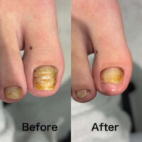 巻き爪矯正に通っていただき1ヶ月でご卒業となりました。お客様からもう少し広げられないですか?と聞かれましたがこれ以上矯正力の強い装具にしても広がらないこととオーバー矯正になってしまうことと付け替えても無駄な時間になってしまうことをお伝えして矯正終了となりました。見た目の変化はあまり分かりませんがお痛みはなくなったということでよかったです。矯正終了後はワイヤーをお渡ししてご自身で矯正ができますので今後痛くなっても通う必要はなくなります。