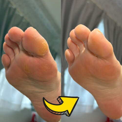 お靴の圧迫やスポーツなどで硬くなってしまった角質ですが、一度のケアでここまで綺麗にツルツルな足裏になります。
