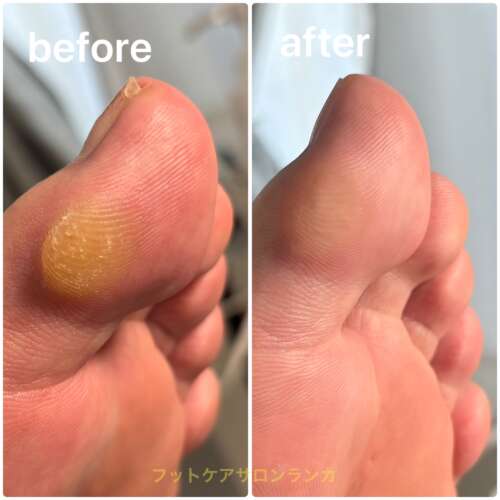 親指横は靴にあたりやすく、擦れなどが原因で硬くなりやすい部分です👣