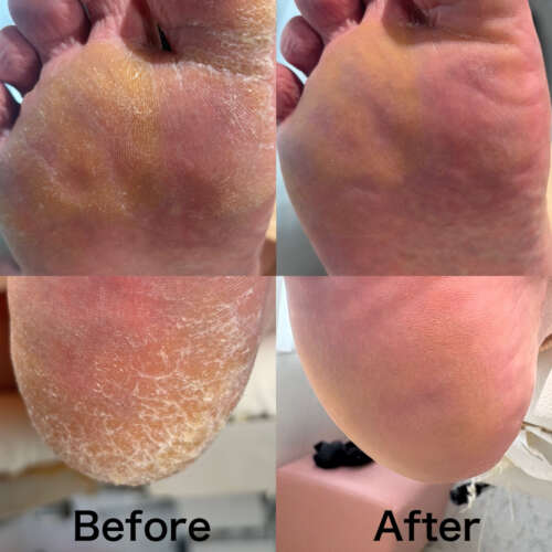 昨日イギリスから日本へご旅行中のお客様がご来店くださいました。踵が硬くてひび割れてしまっていて痛いということで見させていただくと足裏が全体的に硬くなっておりました。