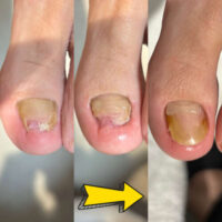 お客様は1ヶ月ほど前にご自身で親指の角を切りすぎてしまい、その影響で炎症が起き、歩くときに痛みが出るようになってしまったそうです。巻き爪が気になるとどうしても角を切りたくなってしまう方は多いのですが、切りすぎると皮膚が傷ついたり爪が食い込みやすく、炎症や痛みにつながることがあります。