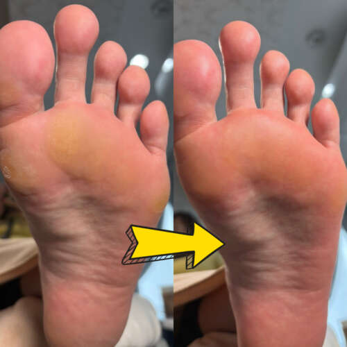 今回は、前足部の硬いタコ(角質)のBefore/Afterをご紹介します。写真のように、ケア前は角質がしっかりついていましたが、ケア後はツルツル・スベスベに仕上がりました。