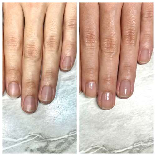 もともとのお爪も綺麗でしたが、爪のアーチができて爪の厚みができて割れにくいお爪になったと喜んでいただけて何よりです☺️