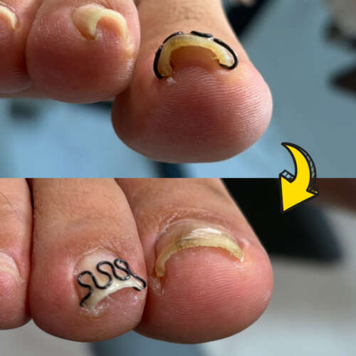 巻き爪矯正を始めて1ヶ月半経過のお爪の変化です。ある程度広がってくれたので今回は反対の親指に装具を装着しました。