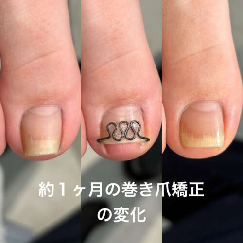 今回は、巻き爪矯正を始めて約1ヶ月経過したお客様の爪の変化をご紹介します。