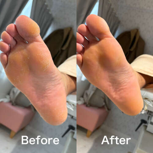 Before/Afterでもわかるように、足裏の乾燥・厚み・硬さが大きく変化し、