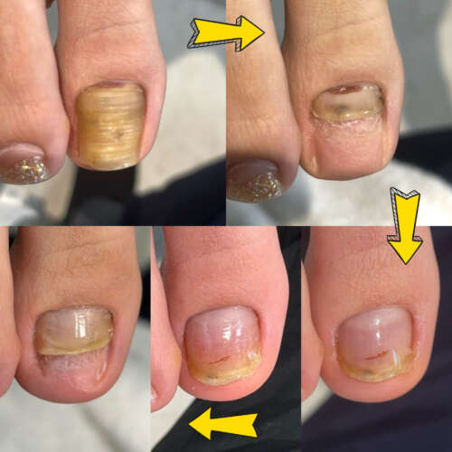 爪トラブルリカバリーケアに通っていただき1年ほど経過したお客様のお爪の変化です。