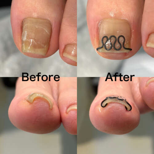 今回も、爪の状態を確認しながら適切にワイヤーを装着し、食い込みを軽減する方向へ整えました。矯正後は爪のカーブが緩み、皮膚への当たりが軽くなった状態になっています。